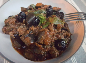 Il s’agit d’un délicieux ragoût de bœuf découpé en morceau et qui a été qui a été sué avec de l’ail, les de muscades, d’oignons et de girofle. Il se mange avec des aubergines frites nappés de sauce tomate. Le tout sera ensuite cuit au four.